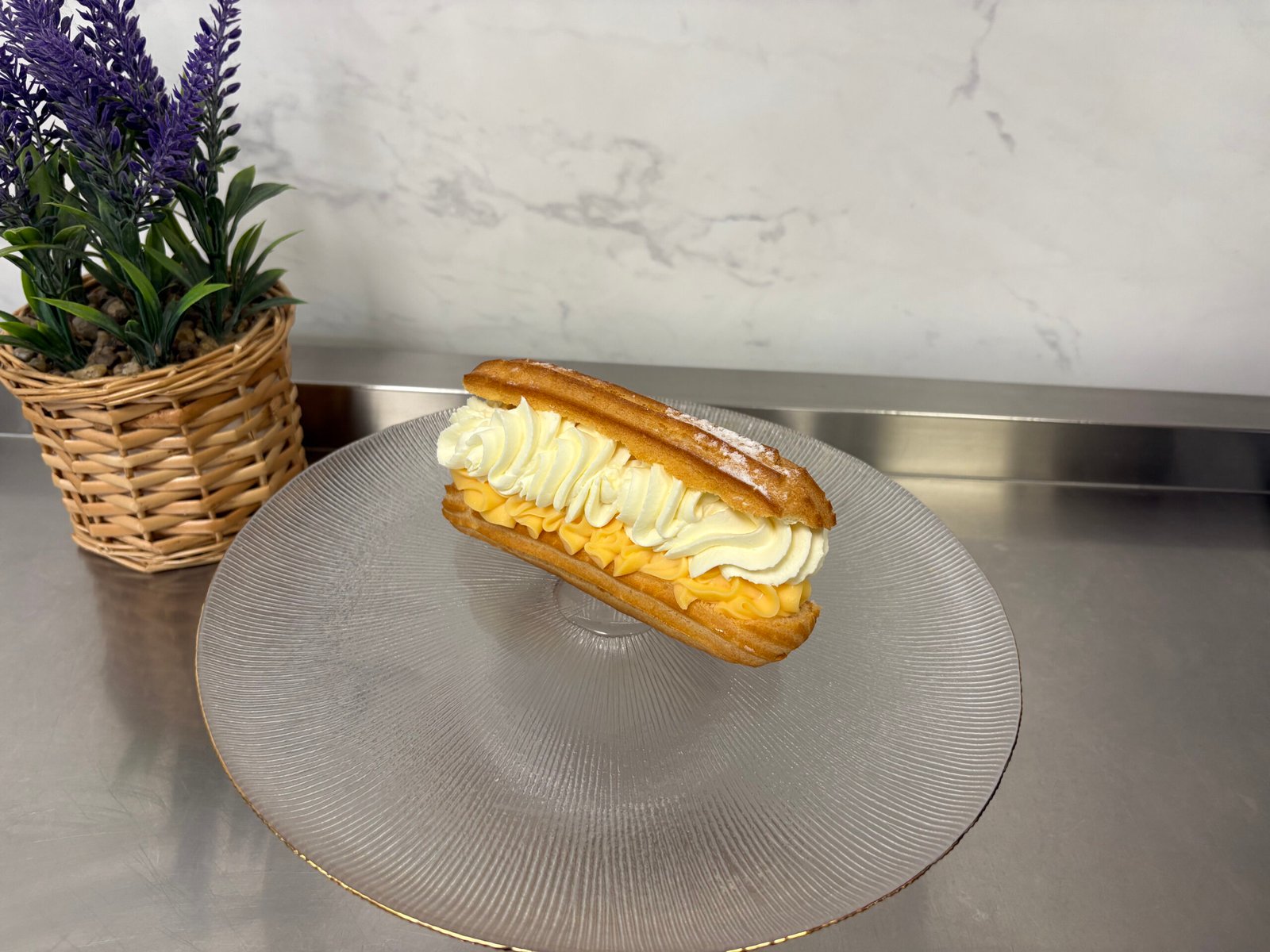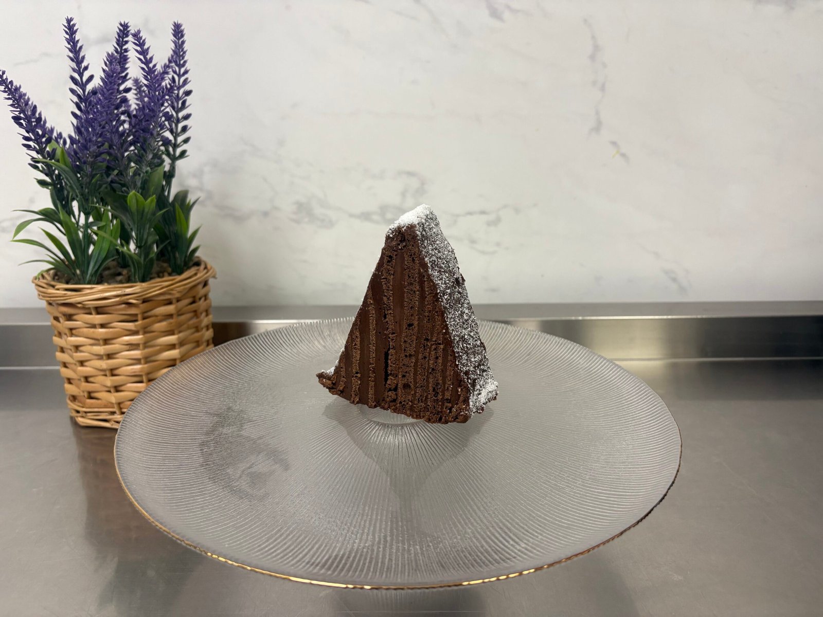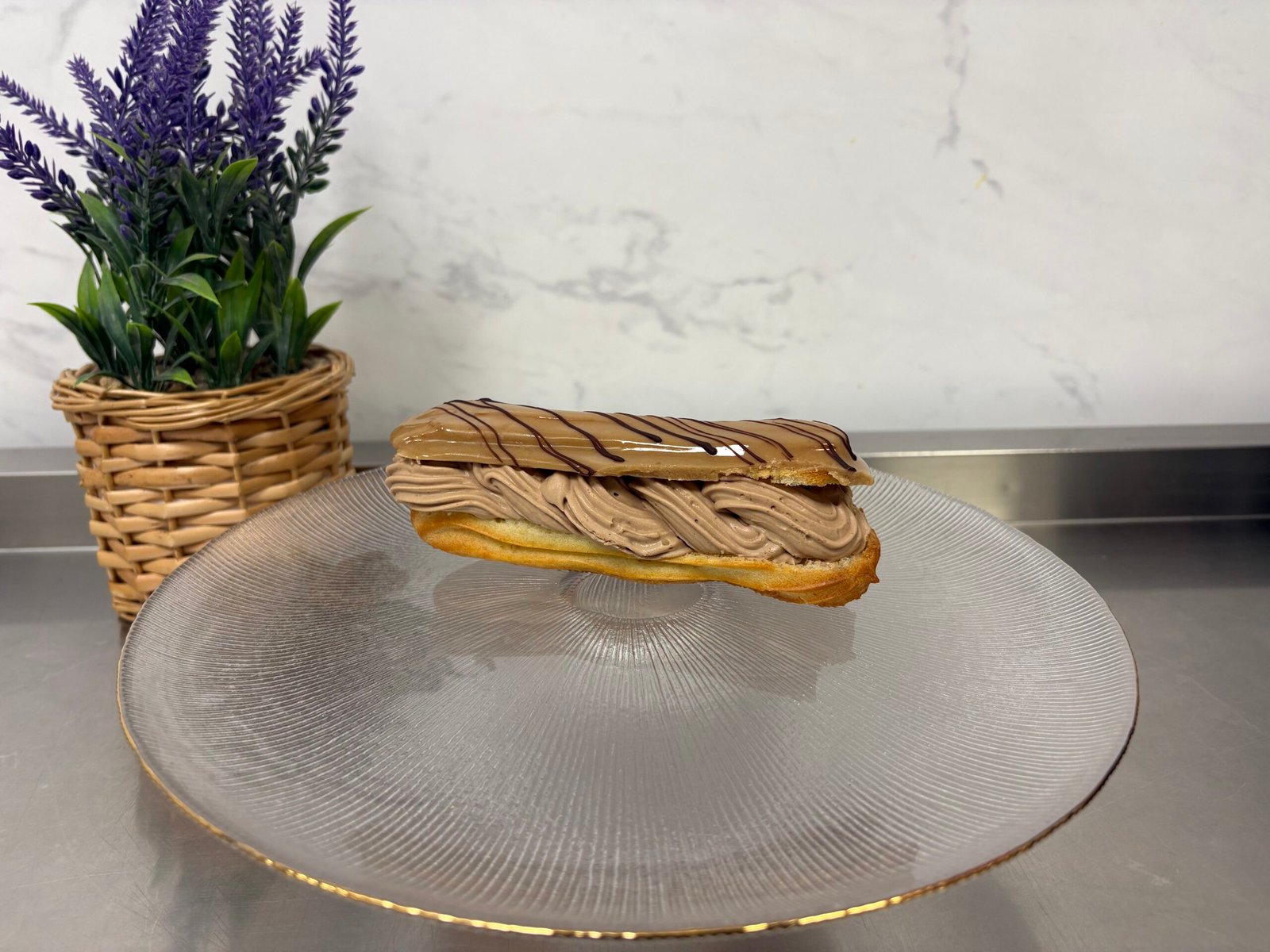 Blat umed de cacao, mousse de ciocolata cu lapte si neagra, choux-uri umplute cu crema de vanilie.