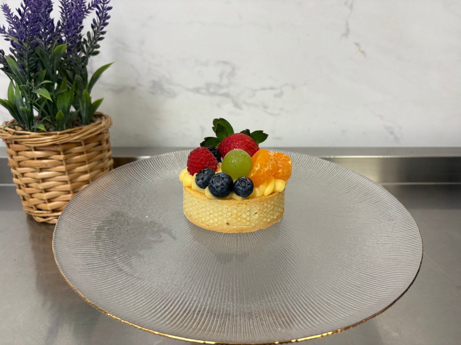 Blaturi/foi vanilie, sarlota cu ou, lapte si gelatina, fructe – ananas, piersica, portocala confiata